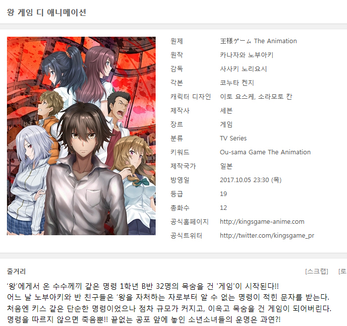[인생] 왕 게임 - 디 애니메이션 01-12완결 -미스테리 공포 스릴러 액션-