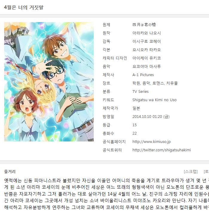 [인생] 4월은 너의 거짓말 01-22완결 [OAD 포함] -음악 치유물 로맨스 드라마-