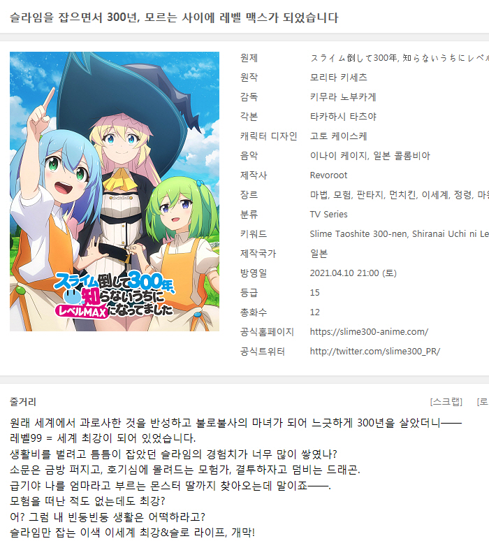 [인생] 슬라임을 잡으면서 300년 모르는 사이에 레벨 맥스가 되었습니다 01-12완결 -모험-