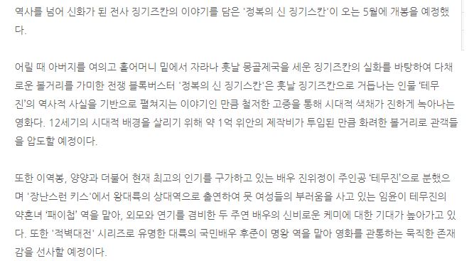 [5월] 전쟁블록버스터 국민영웅 [ 징 기 즈 칸 ] 초고화질 완벽자막