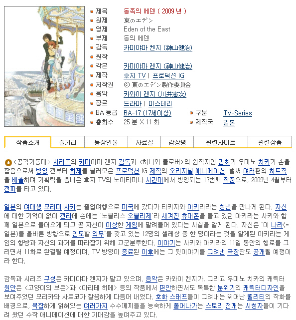 [인생] 동쪽의 에덴 01-11완결 -미스테리 로맨스 스릴러 액션-