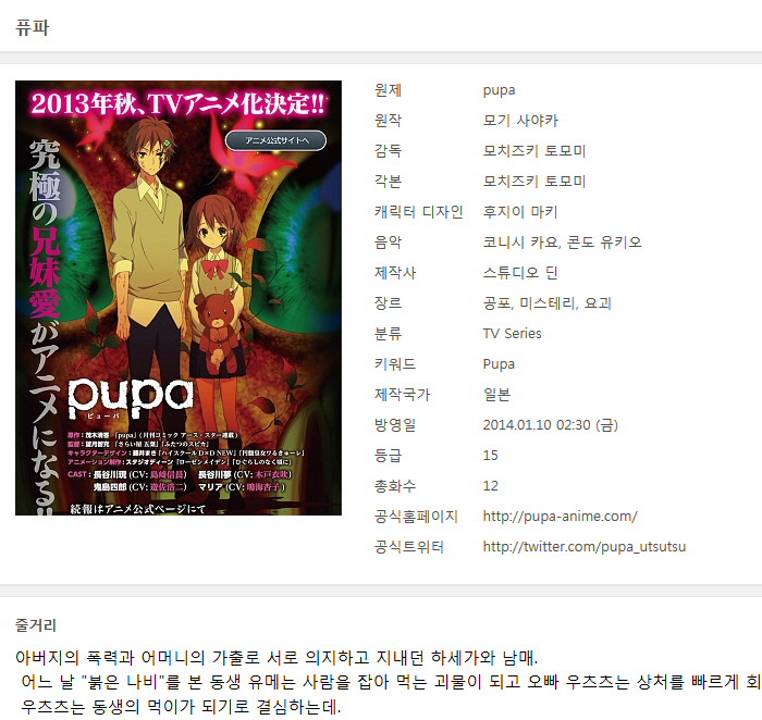 [인생] 퓨파 [Pupa] 01-12완결 -미스테리 공포 요괴 스릴러 액션-