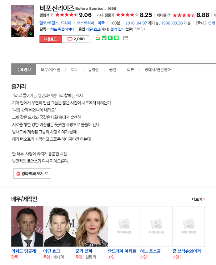 [ 비 포 선 라 이 즈 ] 에단 호크. 줄리 델피 주연 2005