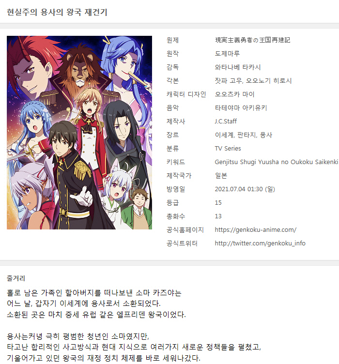 [인생] 현실주의 용사의 왕국 재건기 [1기] 01-13완결 -모험 환타지 드라마-