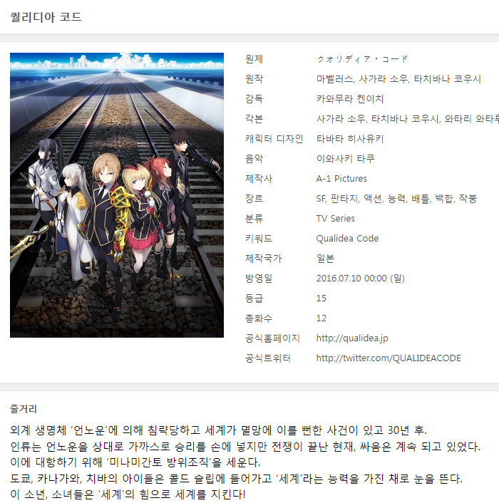 [인생] 퀄리디아 코드 01-12완결 -모험 SF 환타지 스릴러 액션-