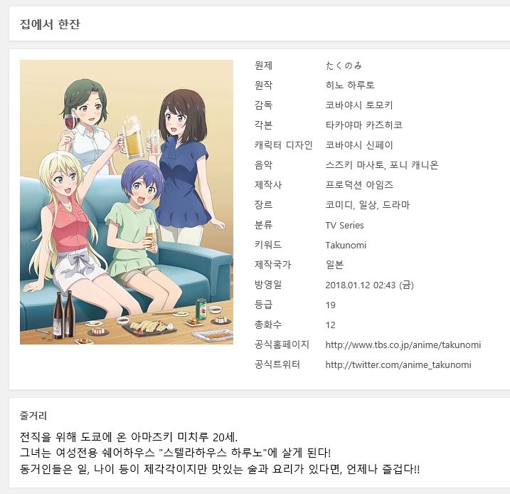 집에서 한잔 (Takunomi, 2018년)1~12화[완결]-FLAC 1080p