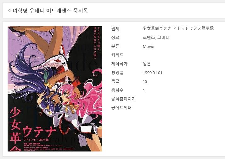 소녀혁명 우테나-어드레센스 묵시록 (1999년)[극장판] 1080p