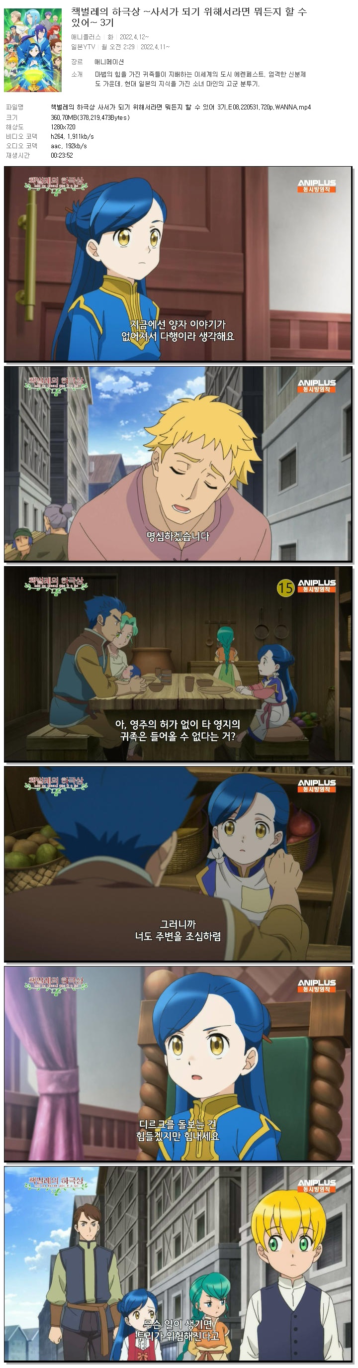 책벌레의 하극상 사서가 되기 위해서라면 뭐든지 할 수 있어 3기.E08.220531.720p.WANNA