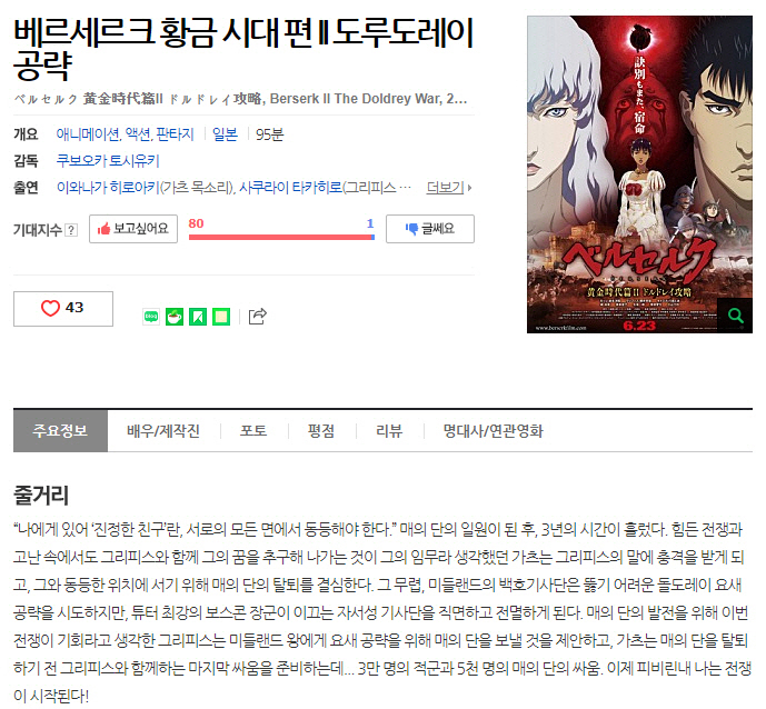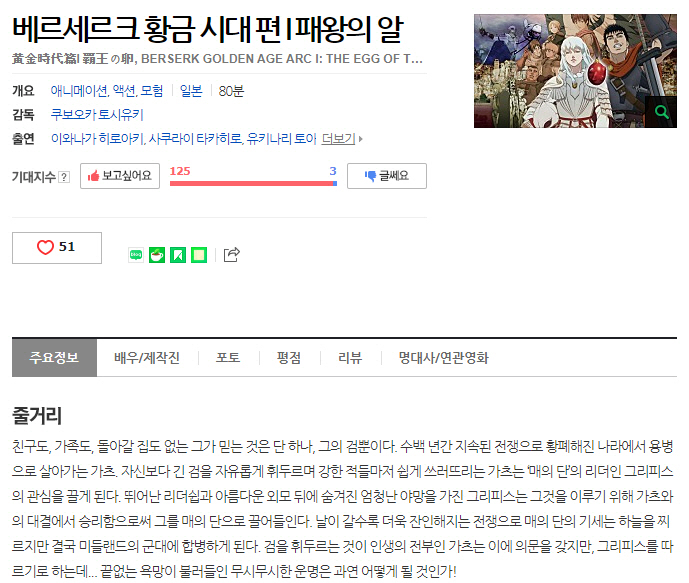 [인생] 베르세르크 - 황금시대 [극장판 - 모음] -모험 전쟁 스릴러 액션-