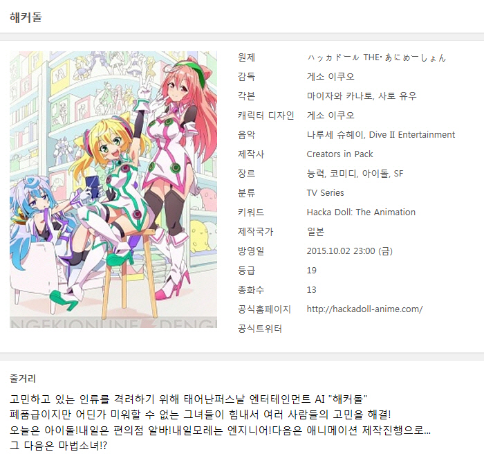 [인생] 해커돌 THE 애니메이션 - 프로그램 01-13완결 -일상 아이돌 코믹-