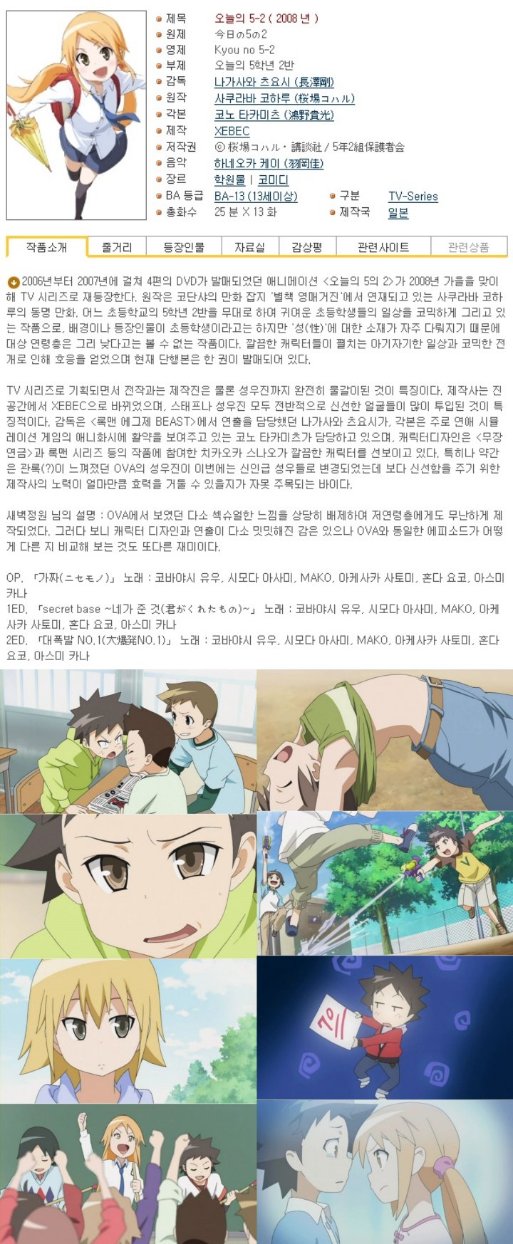 오늘의 5학년 2반! 01~13(완) + [!OVA 포함!]