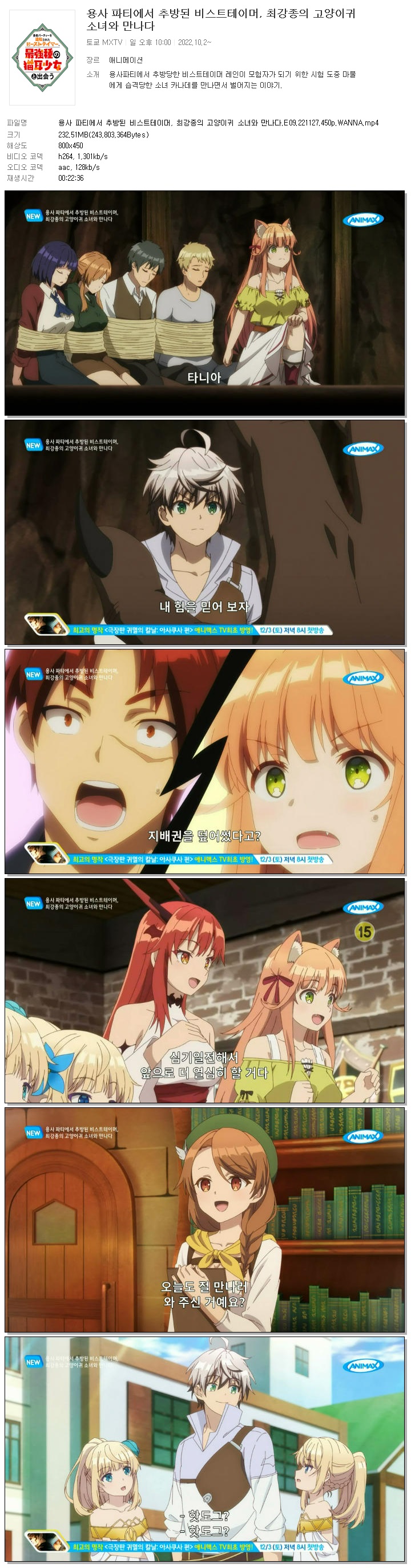 용사 파티에서 추방된 비스트테이머, 최강종의 고양이귀 소녀와 만나다.E09.221127.450p.WANNA