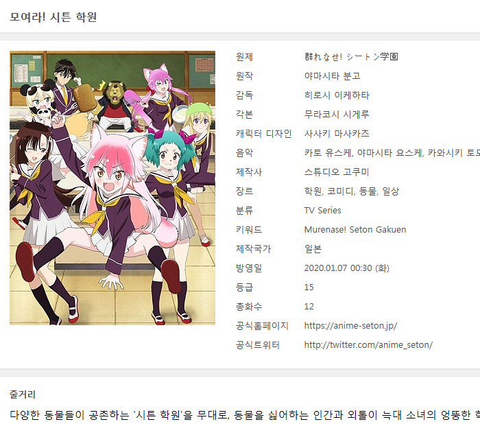 [인생] 모여라 시튼 학원 01-12완결 -일상 동물 코믹 드라마-