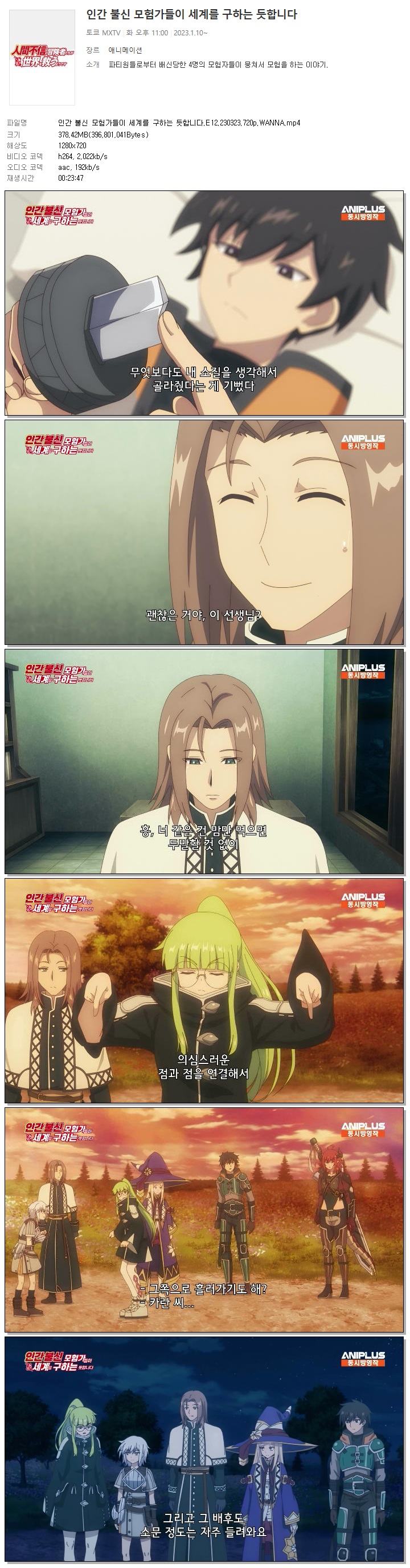 인간 불신 모험가들이 세계를 구하는 듯합니다.E12.230323.720p.WANNA