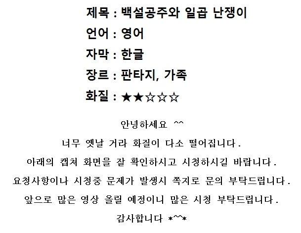 명작 1937 [백설공주와 일곱 난쟁이] 추억의 동화 고화질
