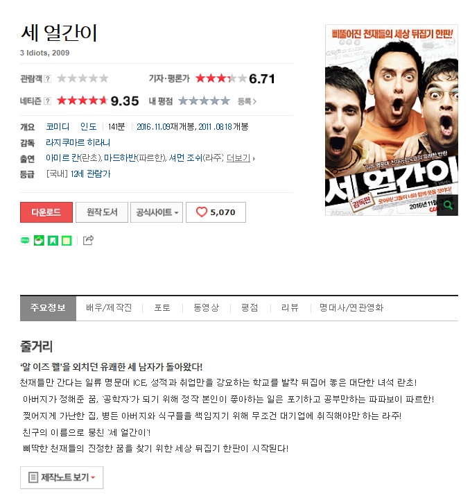 [ 삐뚤어진 천재들 세 얼간이 ] 2009 BluRay 1080p 한글자막