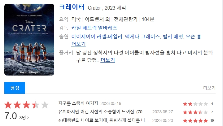 [영화] 크레이터 Crater,2023 [1080p] [자체자막]