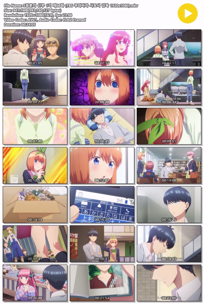 5등분의 신부 1기 제08화 (TBS 쿠와바라 사토시 감독 1920x1080)