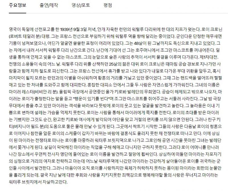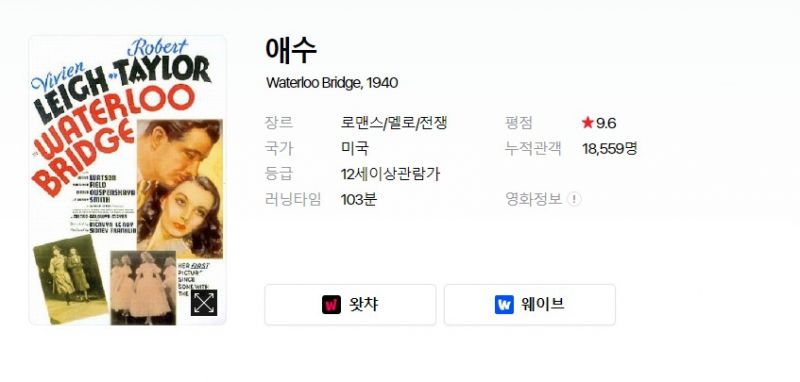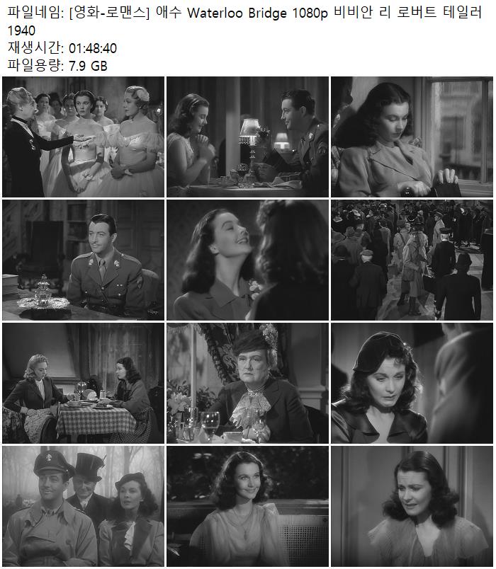[영화-로맨스] 애수 Waterloo Bridge 1080p 비비안 리 로버트 테일러 1940