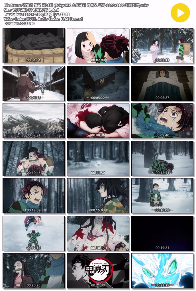 귀멸의 칼날 제01화 (TokyoMX 소토자키 하루오 감독 3840x2160 자체자막)