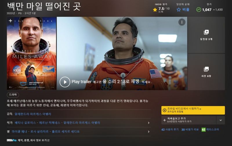 [영화-SF 드라마] 어 밀리언 마일즈 어웨이 A Million Miles Away 2023 1080p