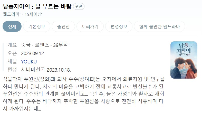 로맨스,멜로 [남풍지아의] 널 부르는 바람 (20화) FHD 성의,장여희