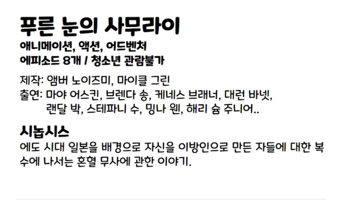 11월.복수를 품은 무사의 액션극(- 푸른눈의 사무라이 -)1080p 정식자막