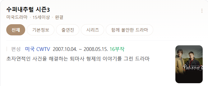 미드] 수퍼내추럴 시즌3 16부작 완결