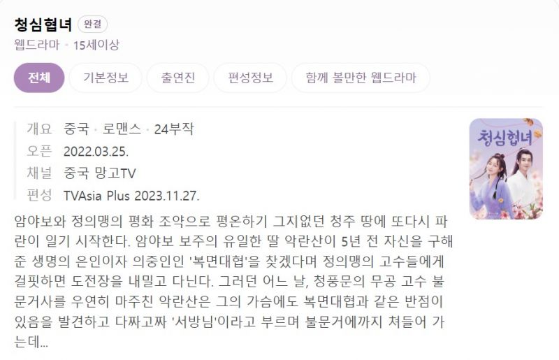 로맨스,시대극 [청심협녀] (01화) FHD (이우동, 정자건)