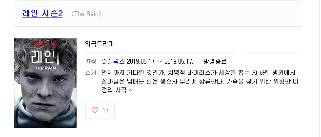 720p 더레인 시즌2 完 죽음의 비 SF생존스릴러 06부작 완결