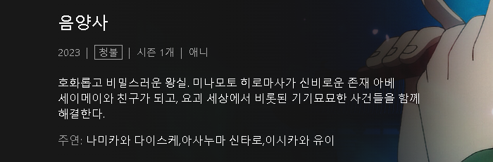 [인생] 음양사 [Onmyoji] 01-13완결 -미스테리 요괴 스릴러 액션-