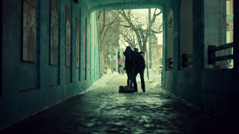 똑같이 생긴 여자가 뛰어들어 자살하는 걸 목격하면서 시작됩니다.