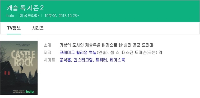 호러판타지 스티븐 킹 원작-캐슬록 시즌2 10부작 완결 [한영 통합